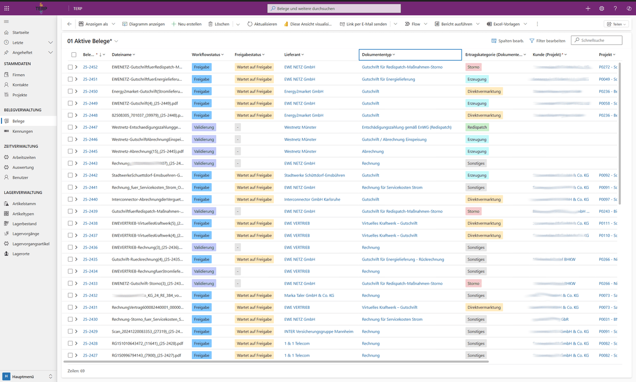 - Microsoft Dataverse — Zentrale Datenbank für Belege, Projekte, Firmen und Dokumententypen