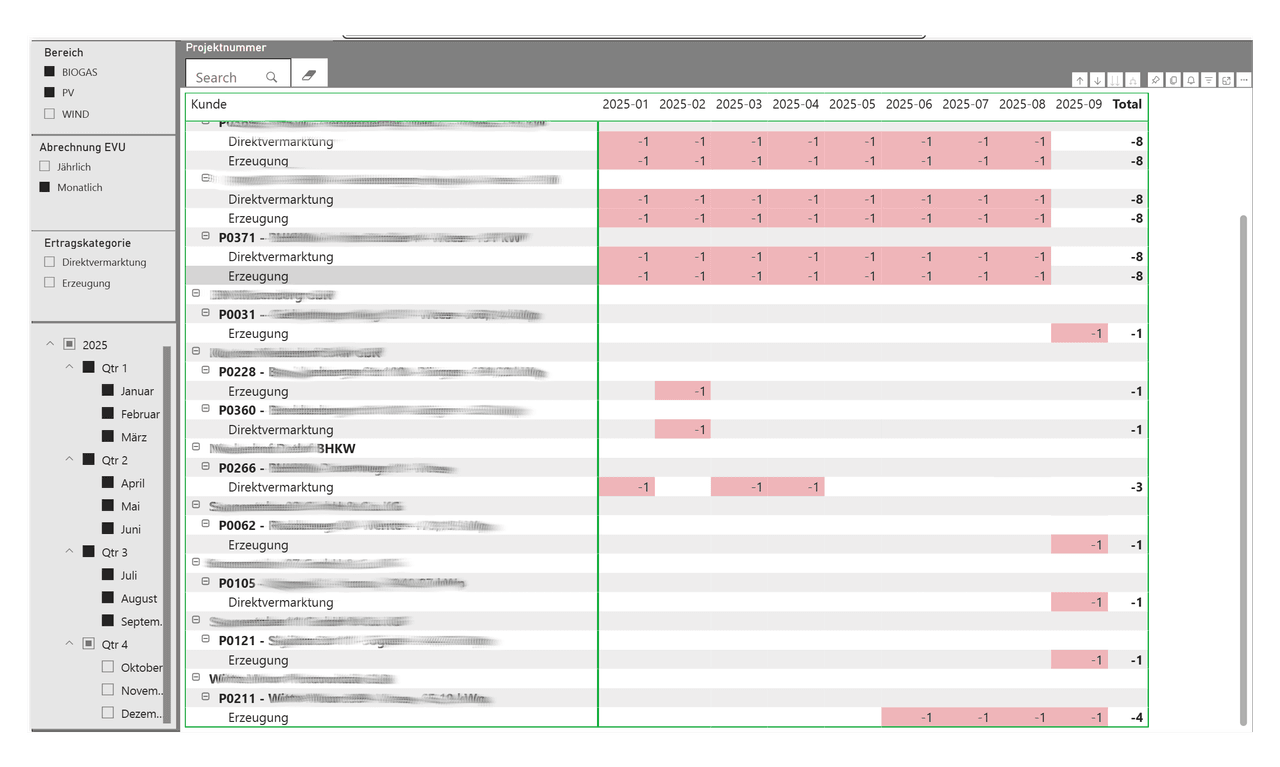 - Power BI — Fehlbeleg-Matrix, Kraftwerks-Zeitreihen und Abrechnungssicht